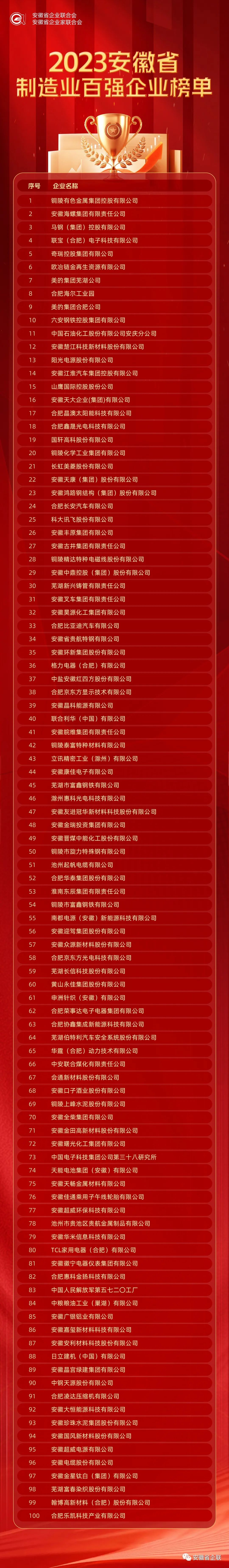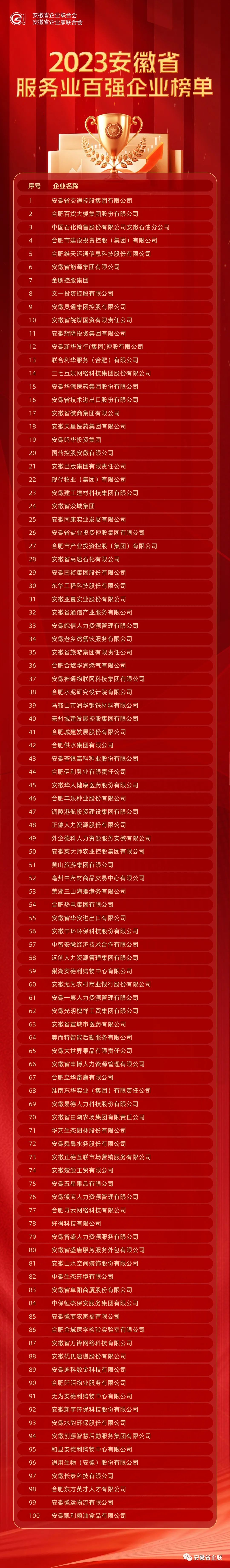 附件:2023安徽省百強(qiáng)企業(yè)、制造業(yè)、服務(wù)業(yè)百強(qiáng)企業(yè)名單